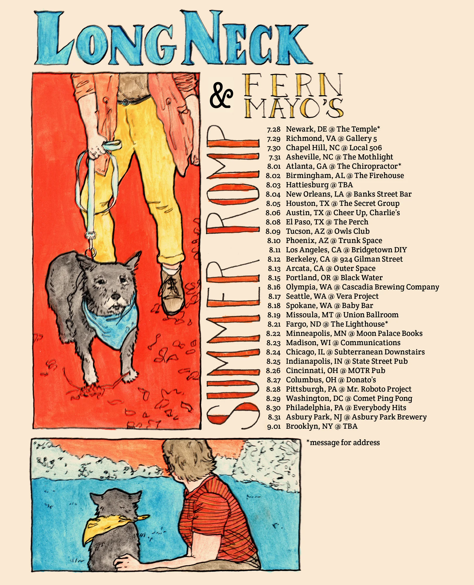 long neck & fern mayo's summer romp tour poster